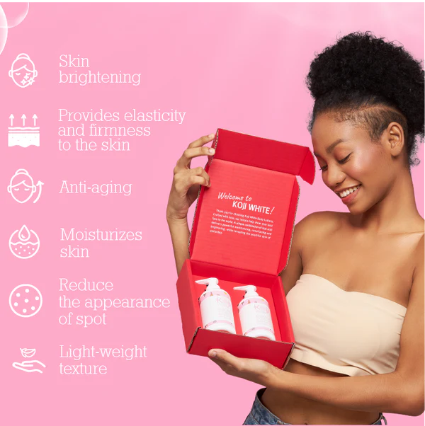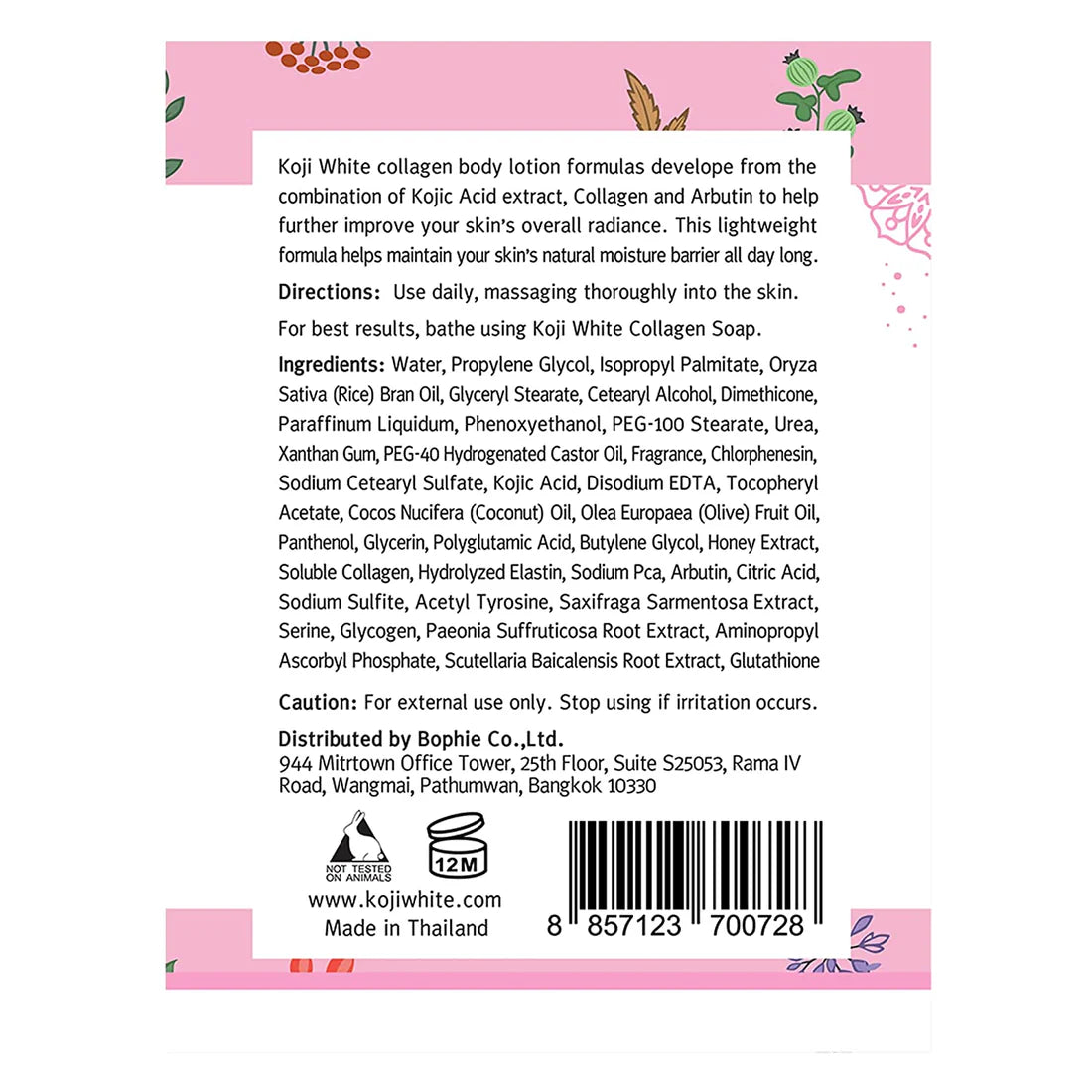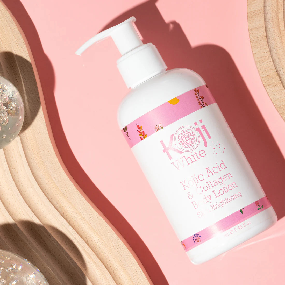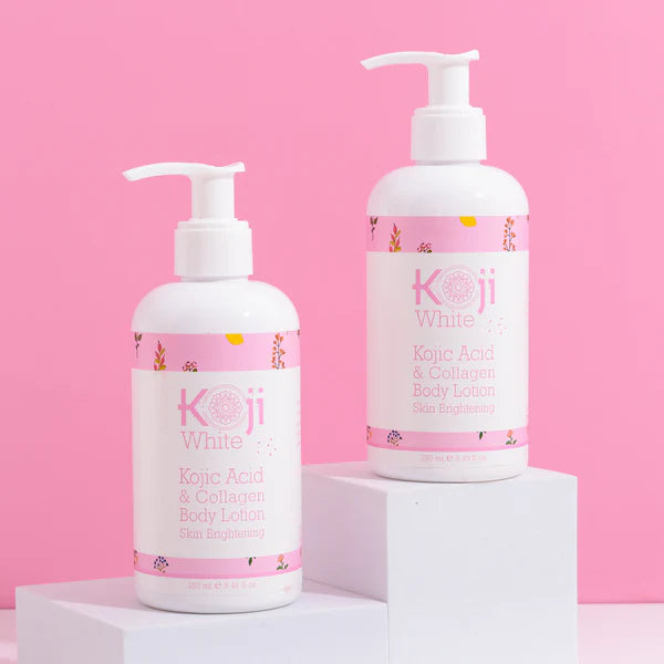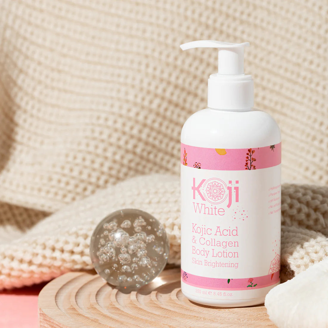 Koji White collagen body lotion formulas developed from the combination of Kojic Acid extract, Collagen and Arbutin to help further improve your skin’s overall radiance. This lightweight formula helps maintain your skin’s natural moisture barrier all day long.