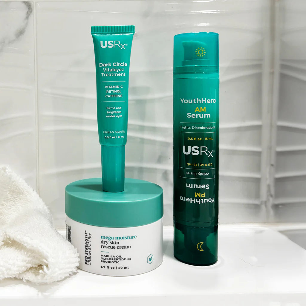 NEW! Give your nighttime routine a glow-up with the PM Fade & Glow Trio! Formulated to visibly reduce dark spots, aging skin & undereye circles, this set reveals even, hydrated skin by morning.