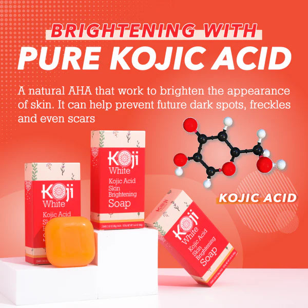 Koji White 5% Kojic Acid Soap reveals a bright, even skin tone by washing away impurities and soothing skin. This is our most popular cleansing bar with the original Kojic acid formulation. Brightening Kojic acid is deeply cleansing and moisturizing, leaving skin glowing and squeaky clean with a light citrus scent.