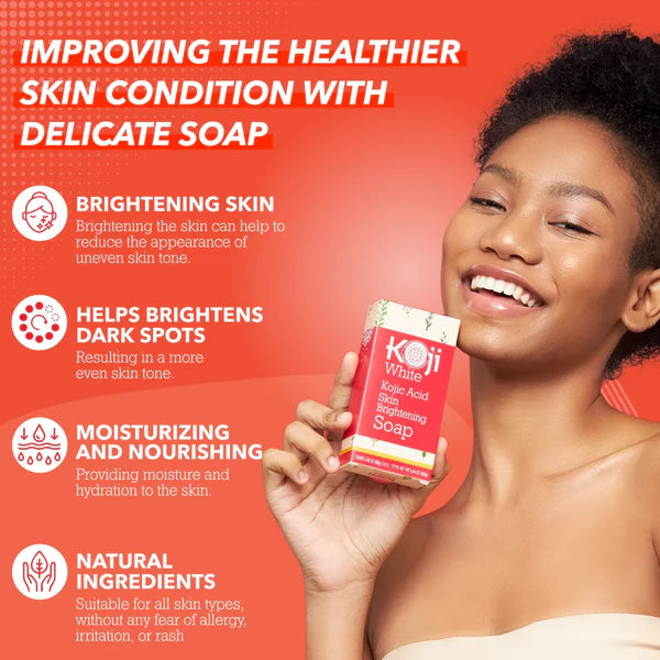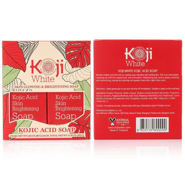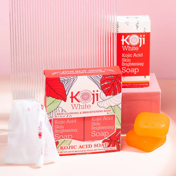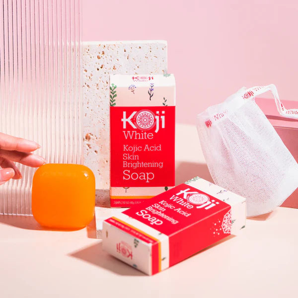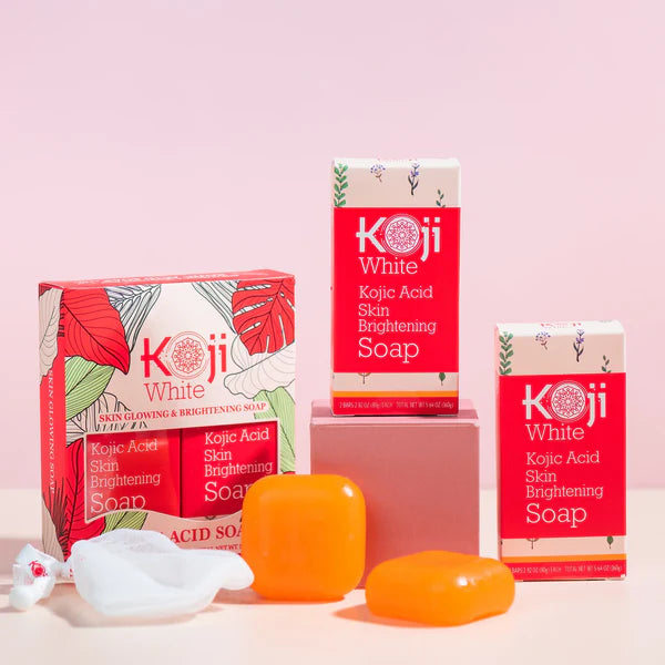 Koji White Kojic Acid Soap reveals a bright, even skin tone by washing away impurities and soothing skin. This is our most popular cleansing bar with the original Kojic acid formulation. Brightening Kojic acid is deeply cleansing and moisturizing, leaving skin glowing and squeaky clean with a light citrus scent.